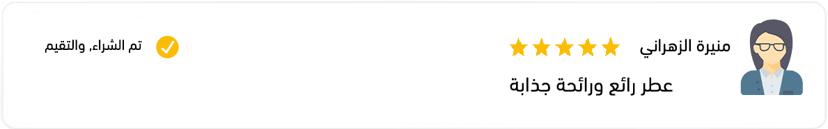 - ثبات عالي: يدوم طويلاً، مما يجعلك تستمتعين برائحته الرائعة طوال اليوم.